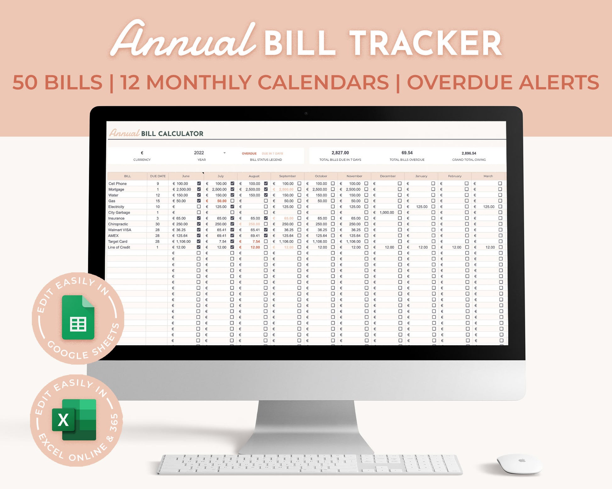 • This spreadsheet is used with Google Sheets, Excel or Excel online.