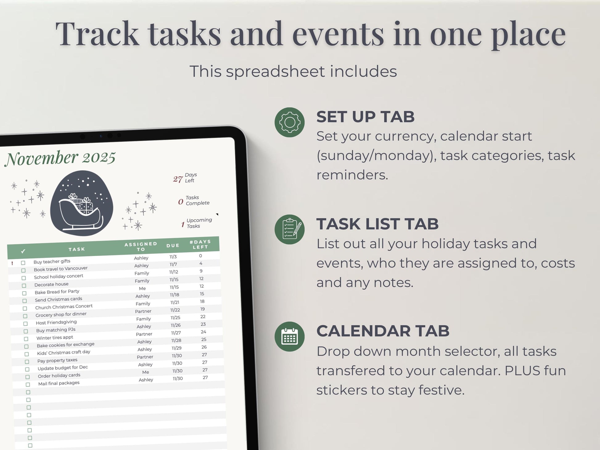 Make this Christmas your smoothest and most magical yet with this Christmas Calendar & Task List for Google Sheets.