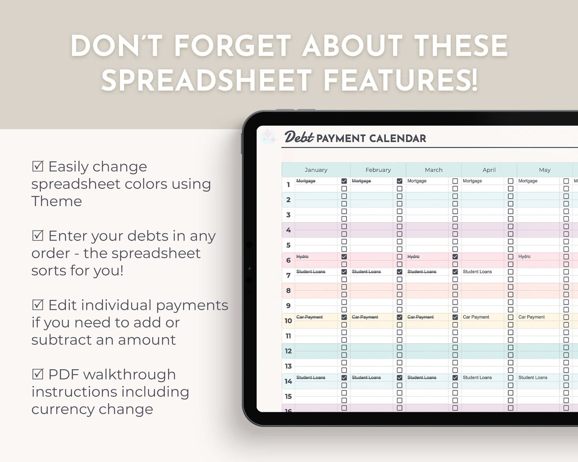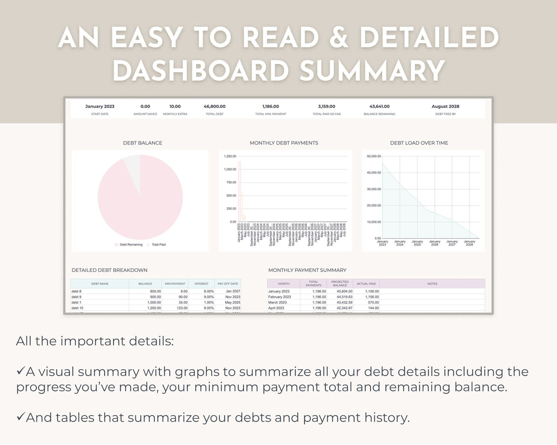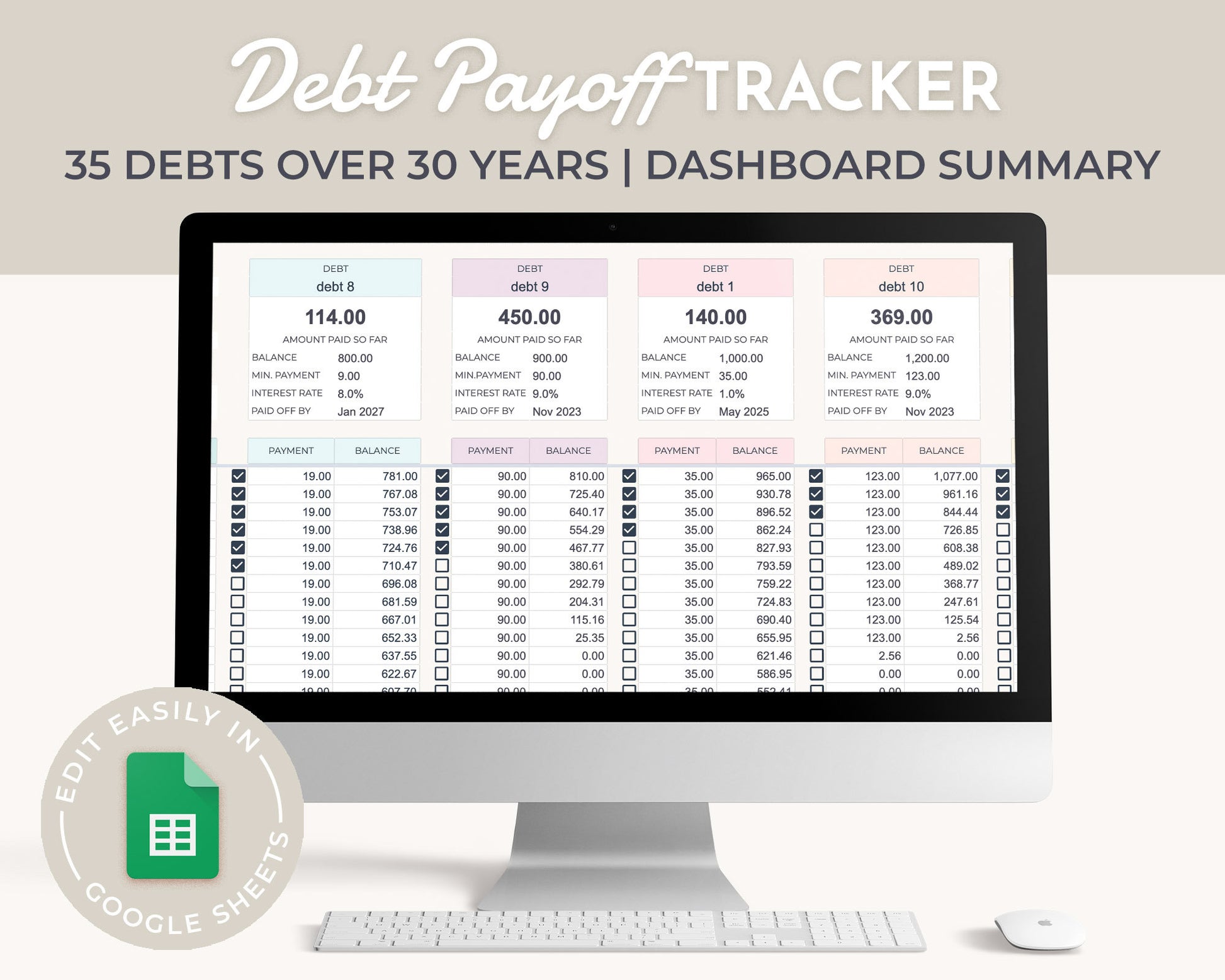 It covers up to 35 debts over 30 years, with a payment tracker, dashboard summary and Annual Debt Payment Calendar.