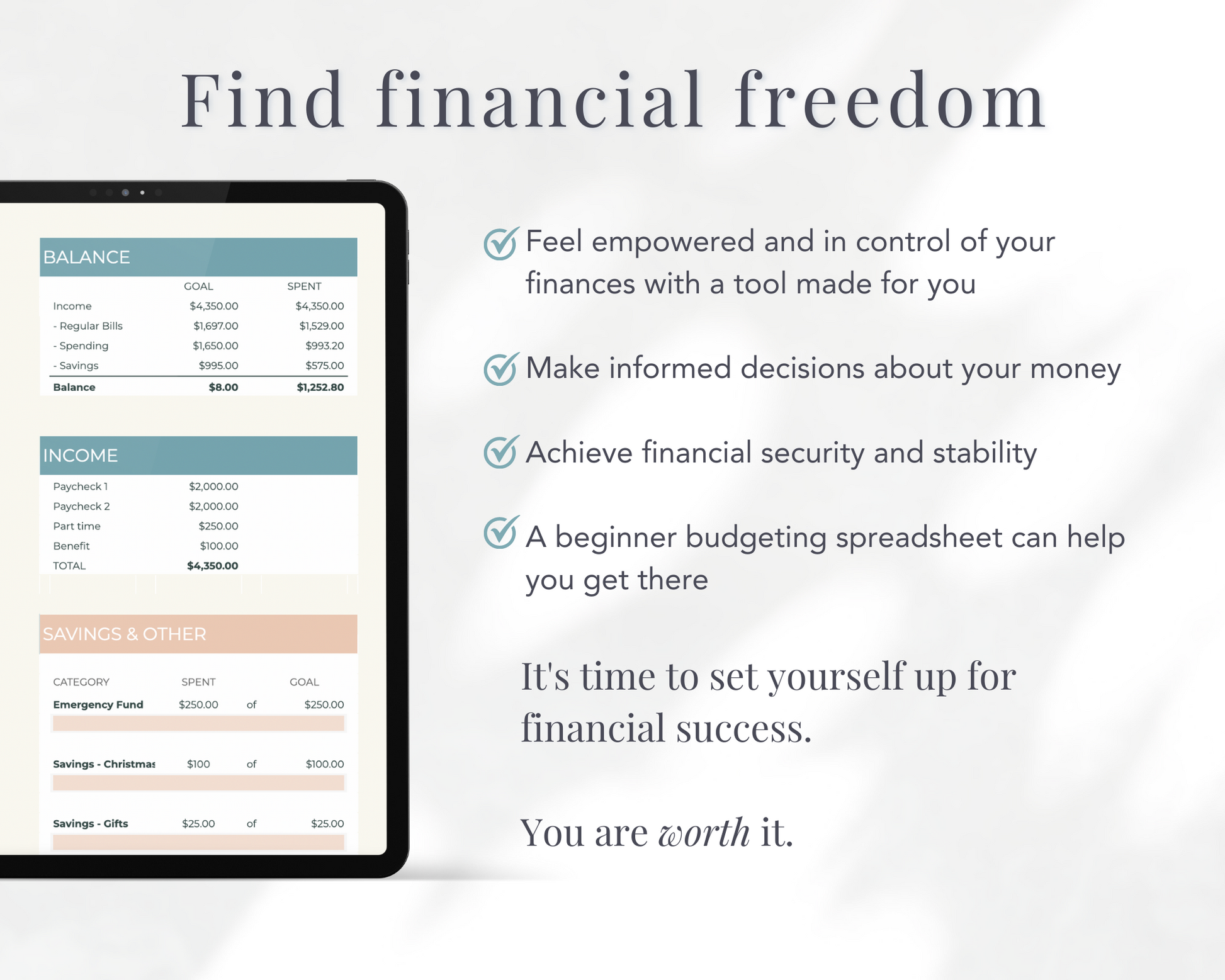 This budget spreadsheet is perfect for anyone who wants to better manage their money. You can use it to track your expenses, see where your money is going, and make sure you're always within your limits. Plus, it's easy to customize to fit your needs.