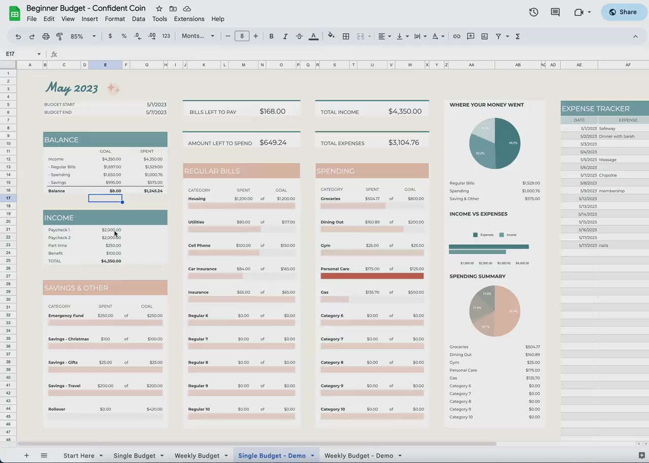 With this easy budget template, you can create a monthly or weekly budget in Google Sheets or Excel and stay on track with your finances.