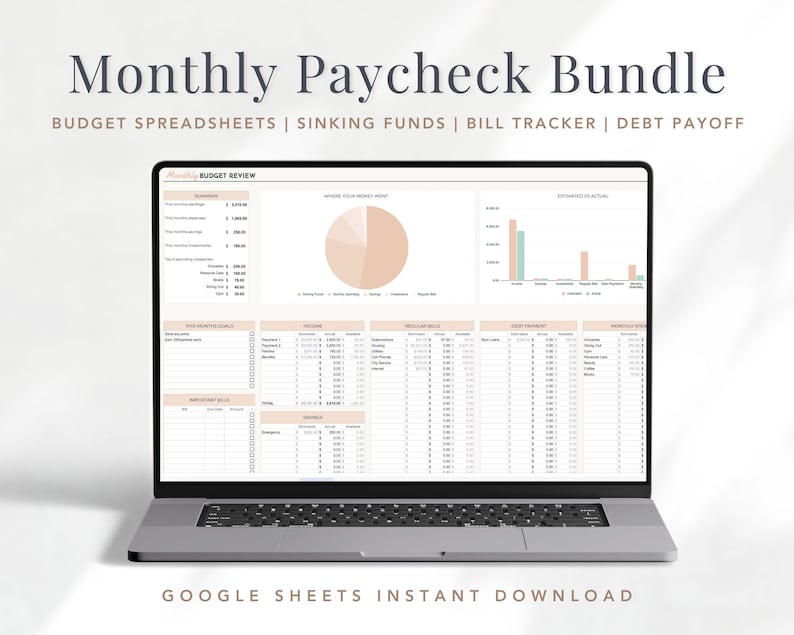 Get everything you need in this Budget Spreadsheet Bundle. It includes 4 files including a Monthly Budget, Debt Payoff Tracker, Sinking Funds Tracker and an Annual Bill Tracker for all your expenses.