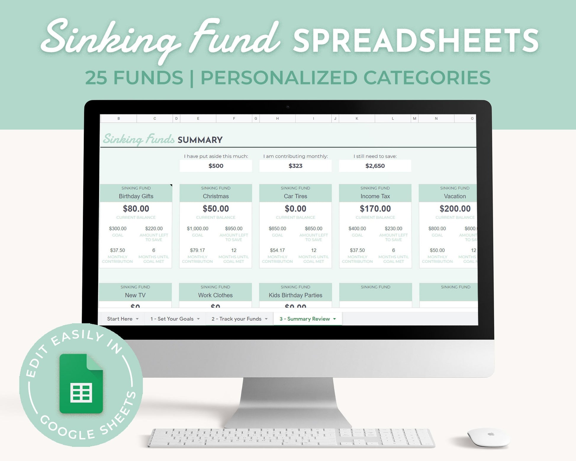 • Tab 3: Sinking Funds Tracker to log your contributions and withdrawls