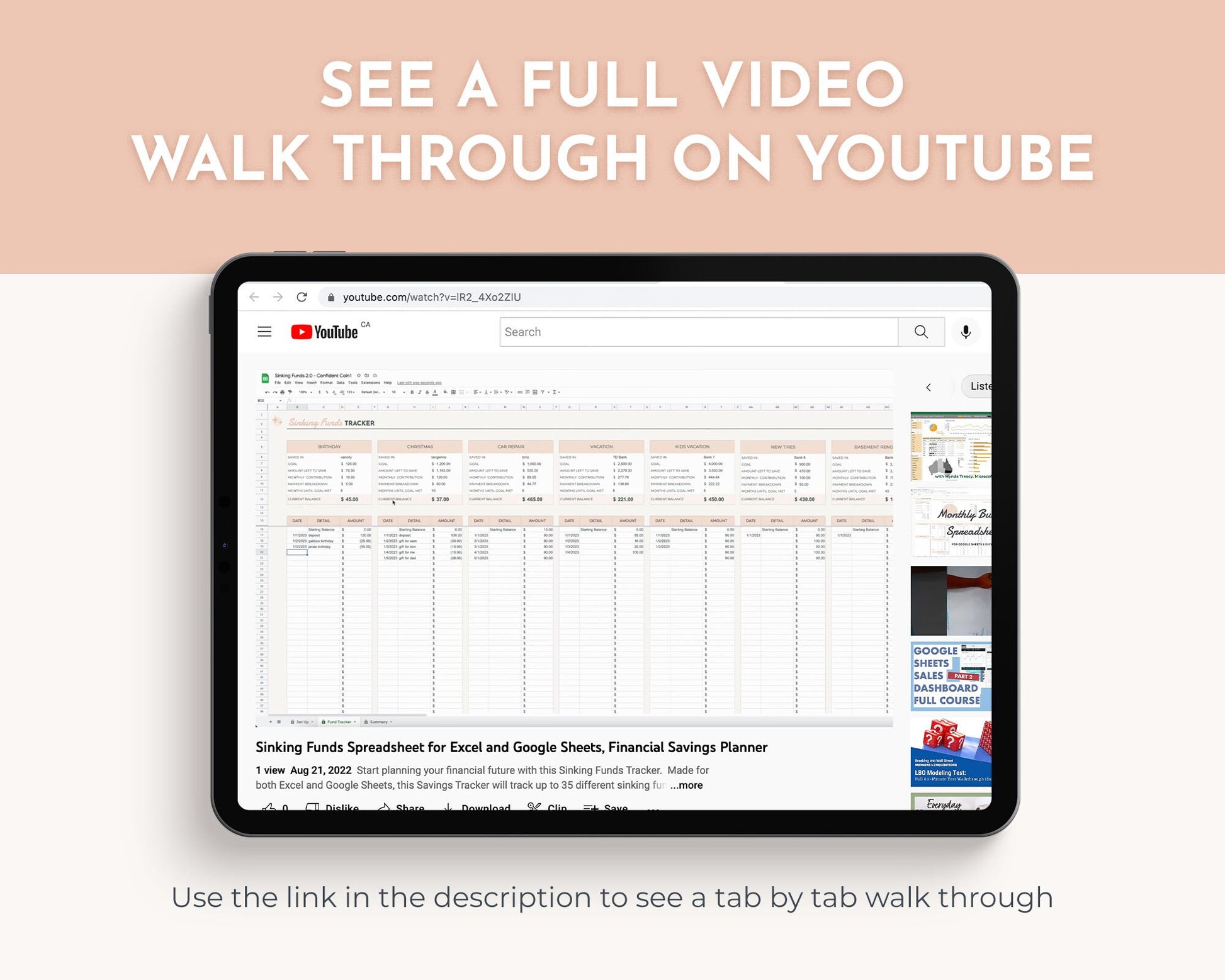 Made for both Excel and Google Sheets, this Savings Tracker will track up to 35 different sinking funds (or savings accounts).