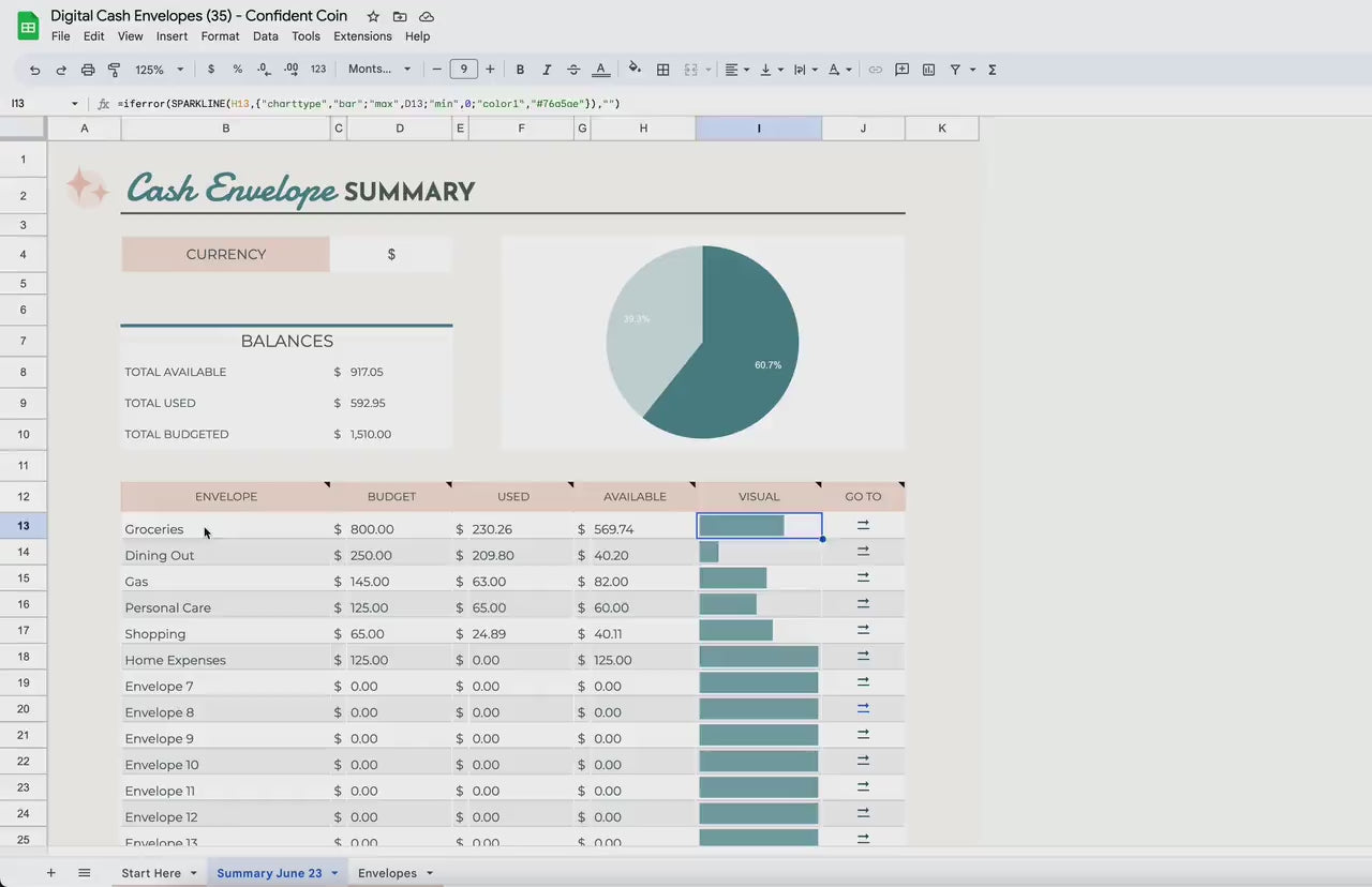 It has 35 digital envelopes in one spreadsheet for your digital cash tracking. Track your cash (or card) spending easily for up to 35 different "envelopes" in Google Sheets OR Excel.