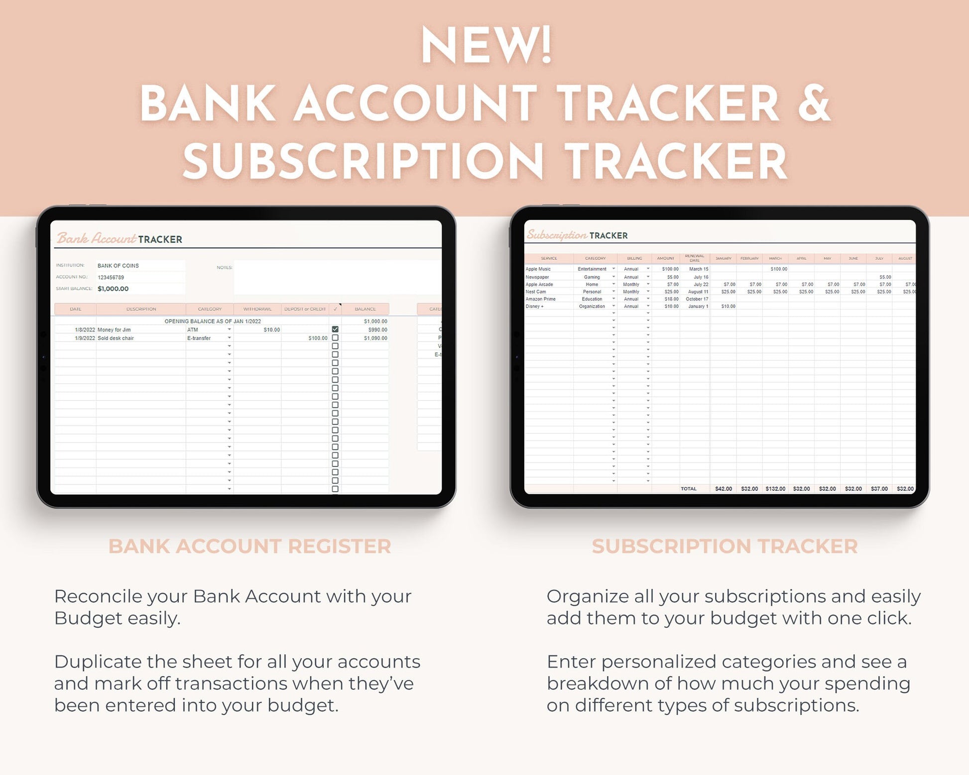 • NEW!: Bank Tracker to reconcile your banking accounts with your budgets & Subscription Tracker to track your subscriptions.
