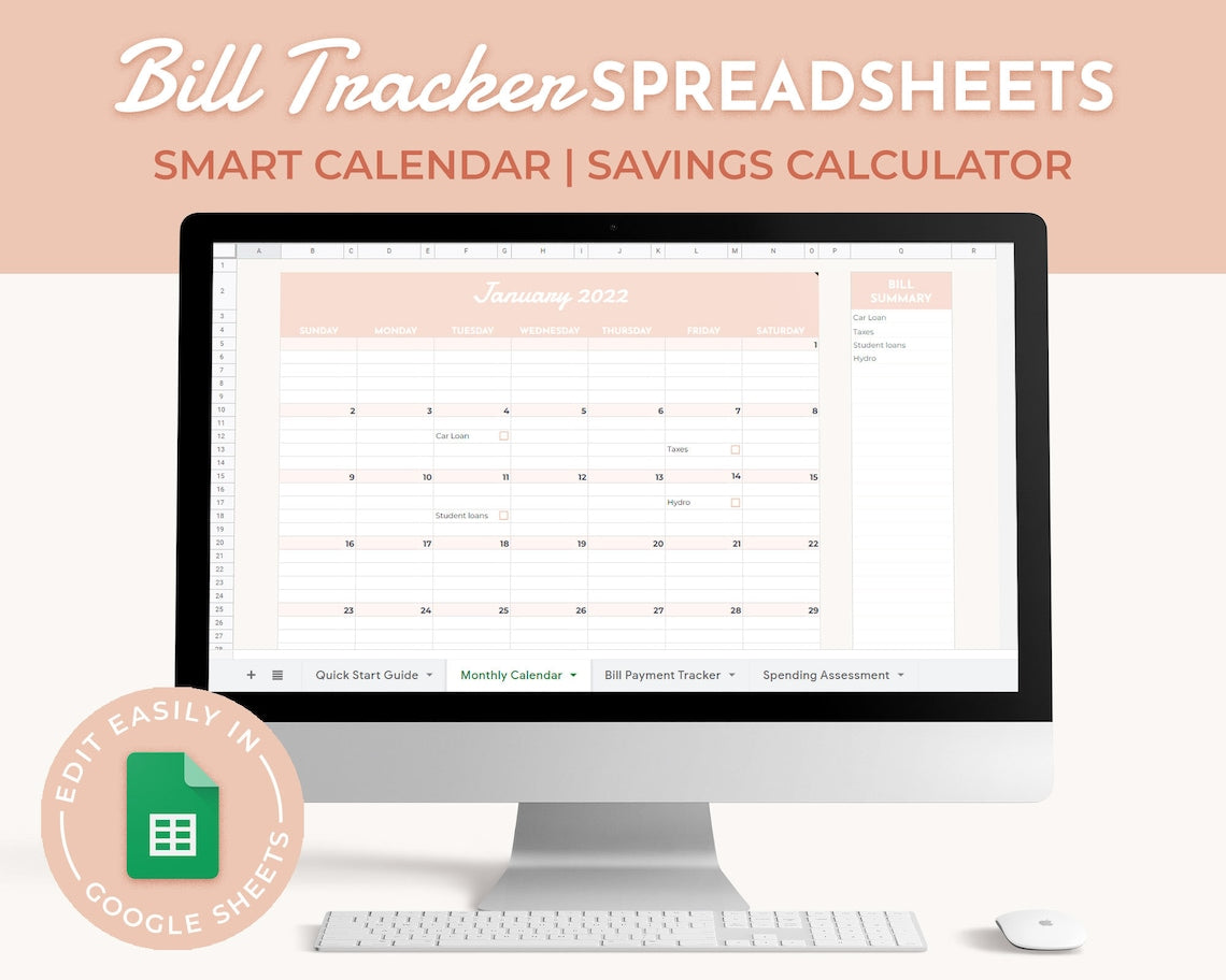This Bill Tracker has everything you need to ensure consistent monthly payments (good for your credit score 😉), a smart calendar to remind you when your bills are due and a Spending Assessment to see if there is any room for savings.