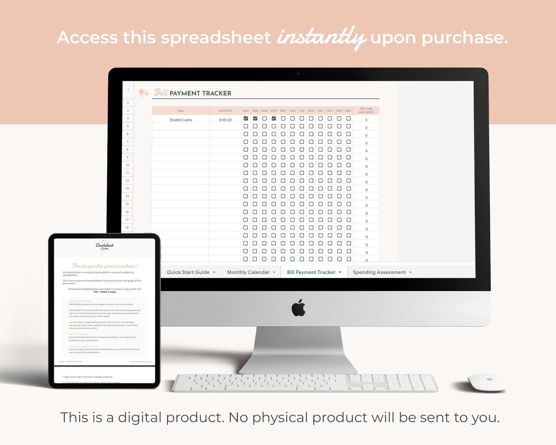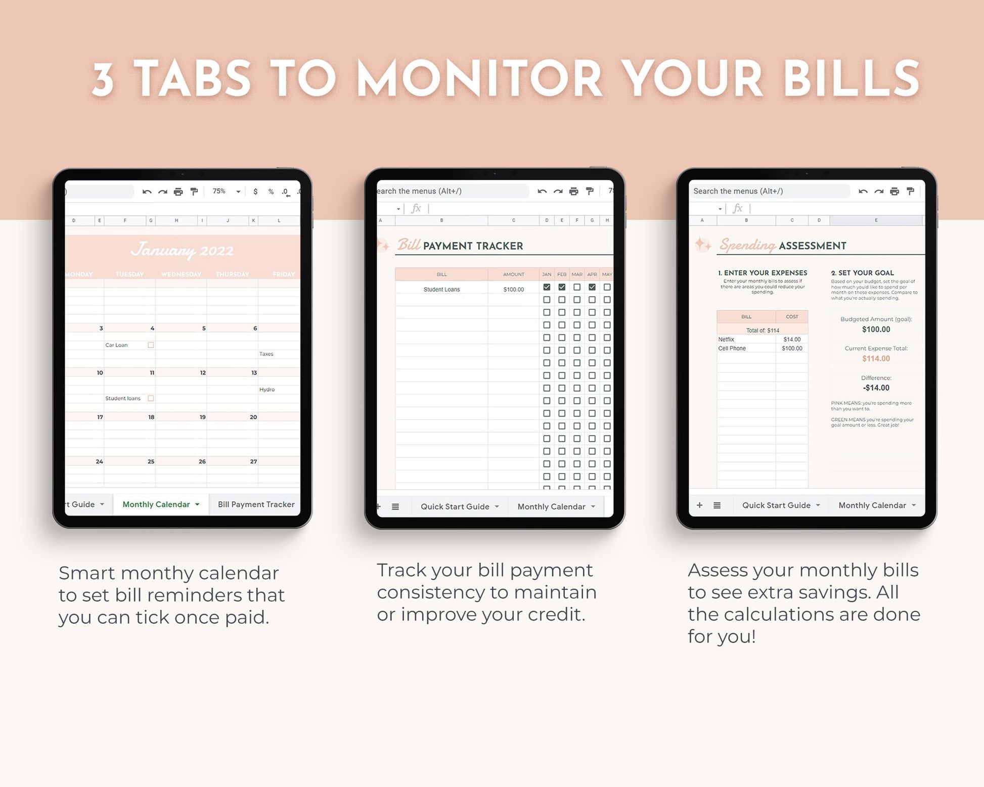 • Tab 3: Monthly Payment Tracker to keep you motivated to pay your bills on time