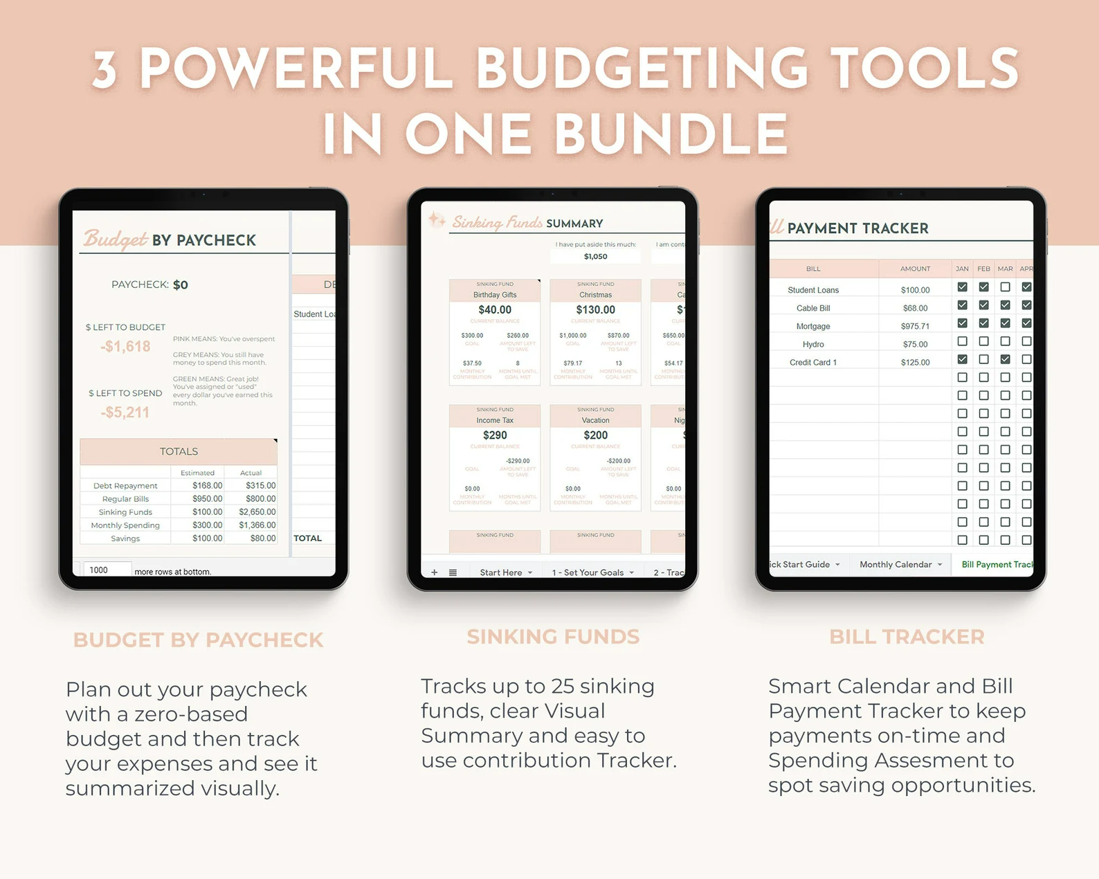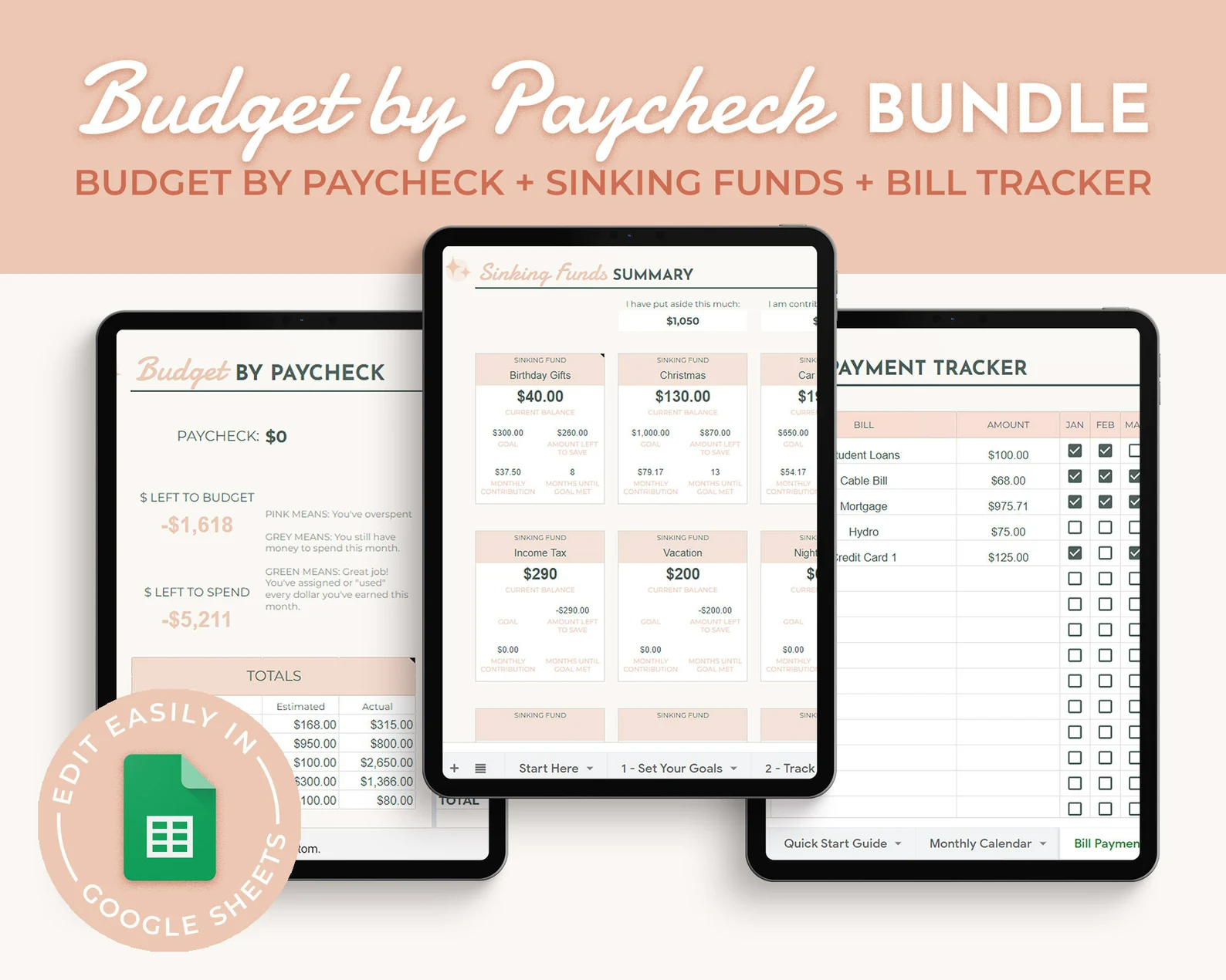 Want to Budget by Paycheck, manage your Sinking Funds and Track your Bills? Bundle up and save!