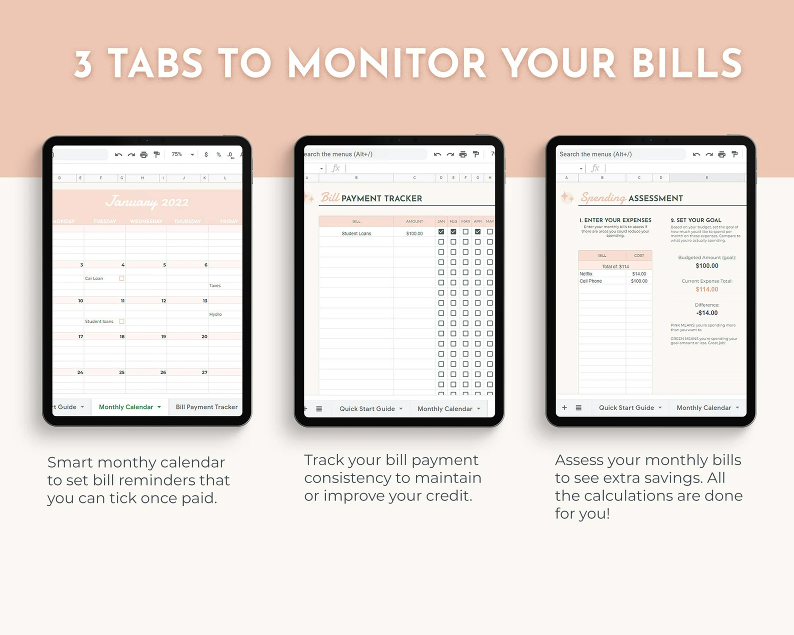 • Once you purchase the listing, you will download 3 PDF files, one for each item. Included in the PDF is a link to access the spreadsheet and a BONUS walk-through guide.