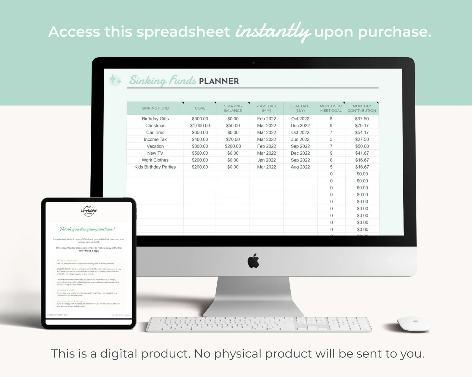 • Once you purchase the listing, you will download a PDF file. Included in the PDF is a link to access the Monthly Budget Google Spreadsheet