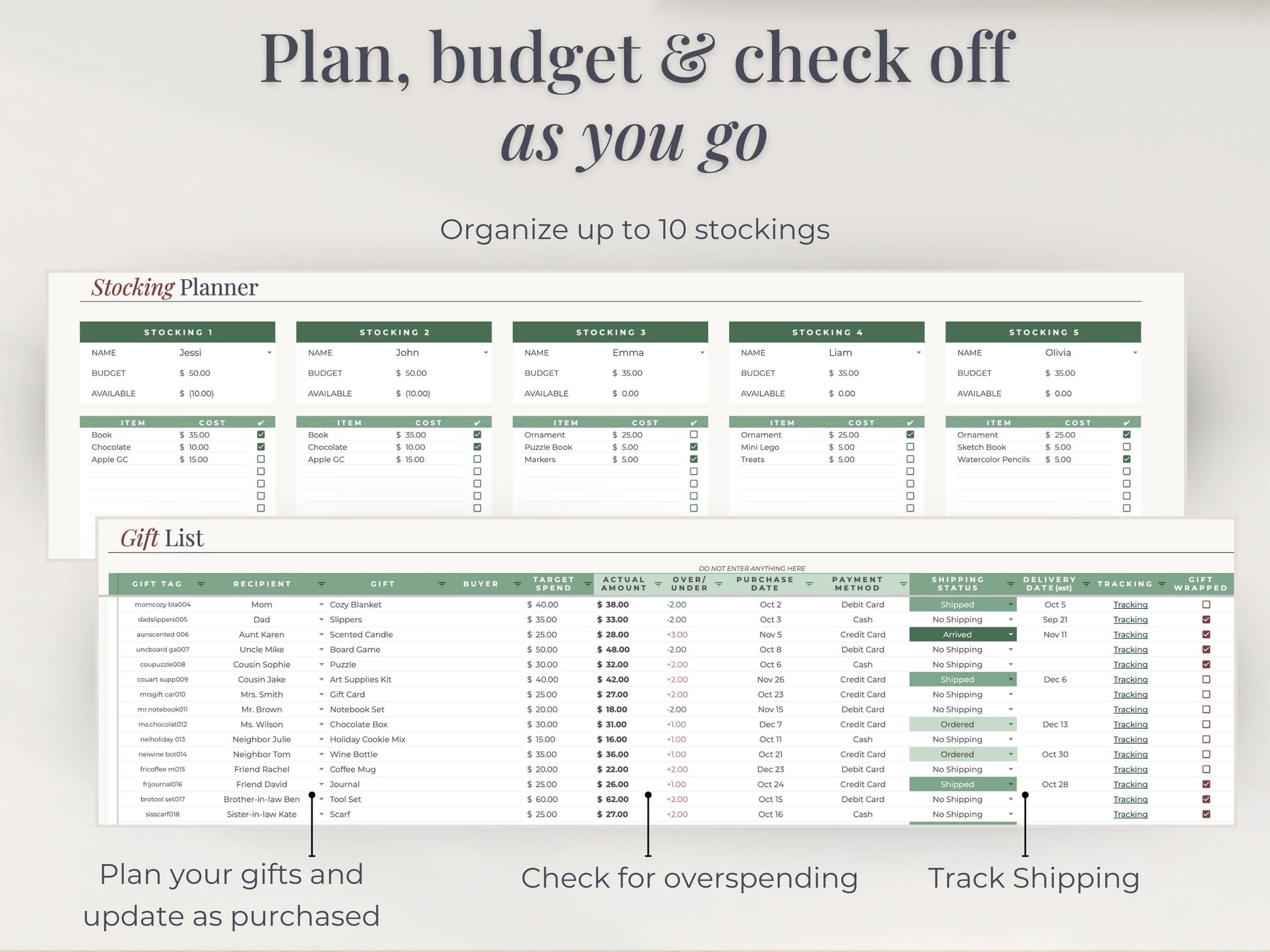 ✓ Track spending & stick to your budget, avoid holiday overspending.