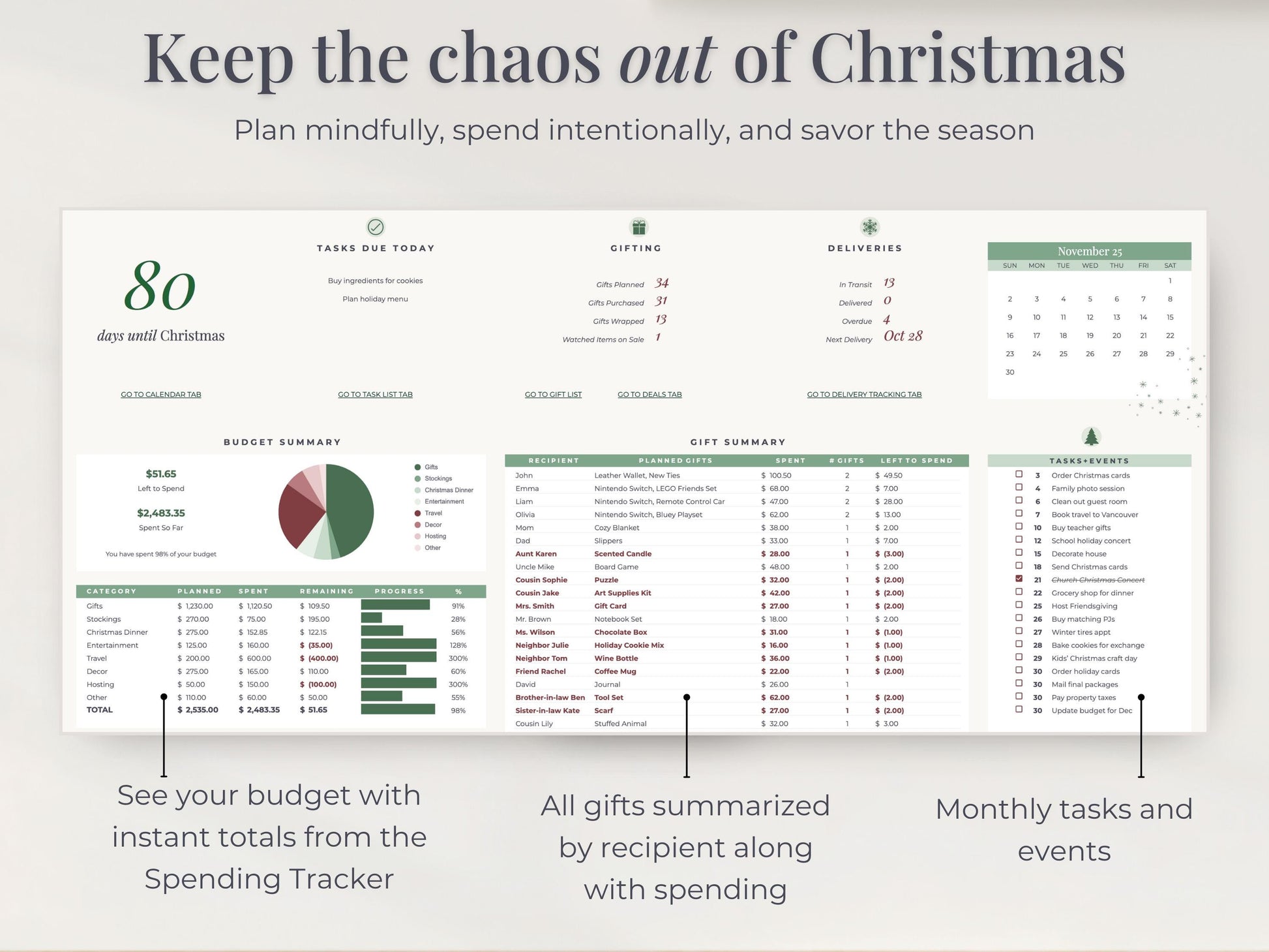 Together, these tabs give you structure, accountability, and a clear holiday roadmap so that you can stay calm.