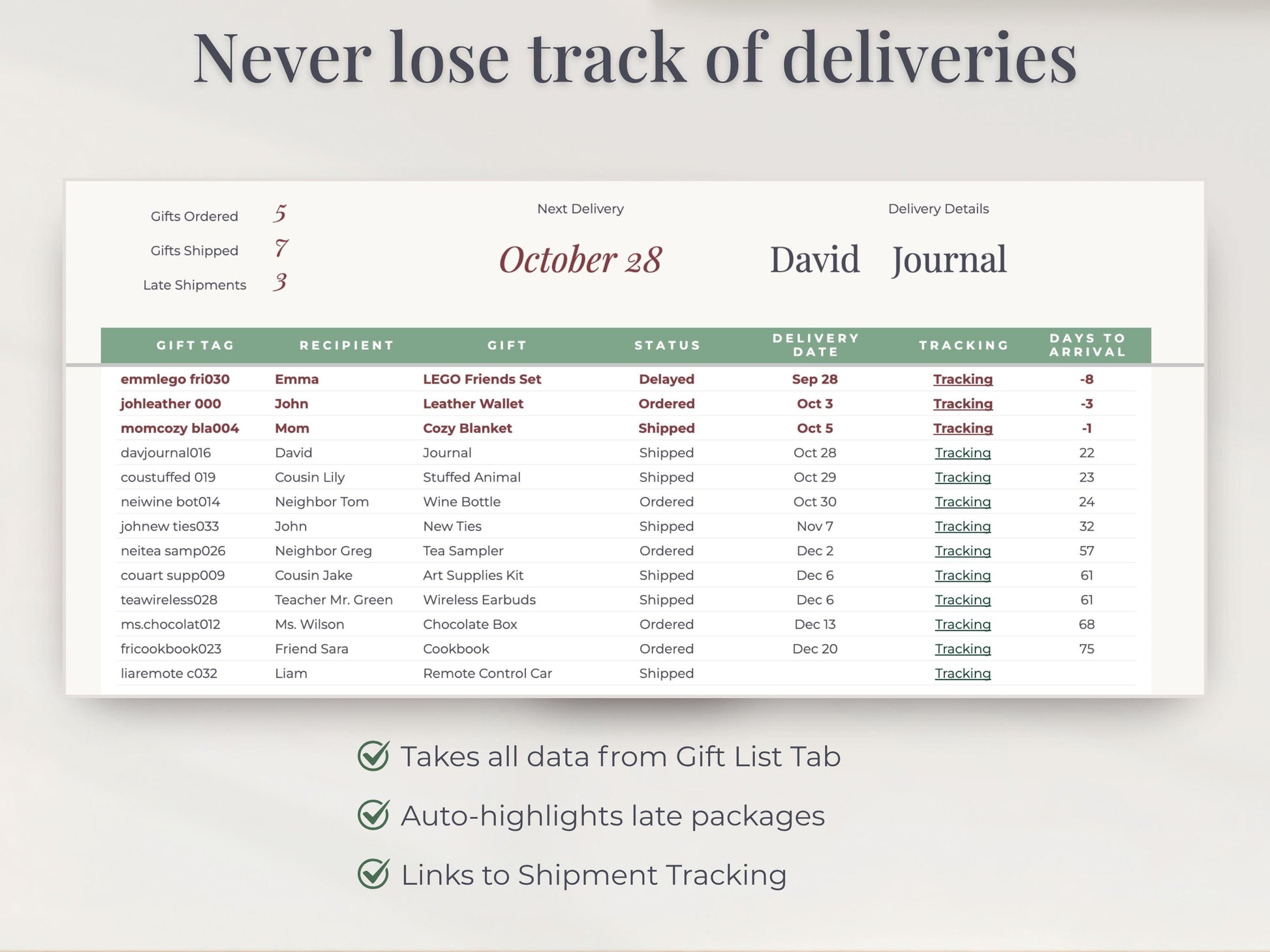 ✓ Never lose track of gifts, cards, deals, or deliveries again.