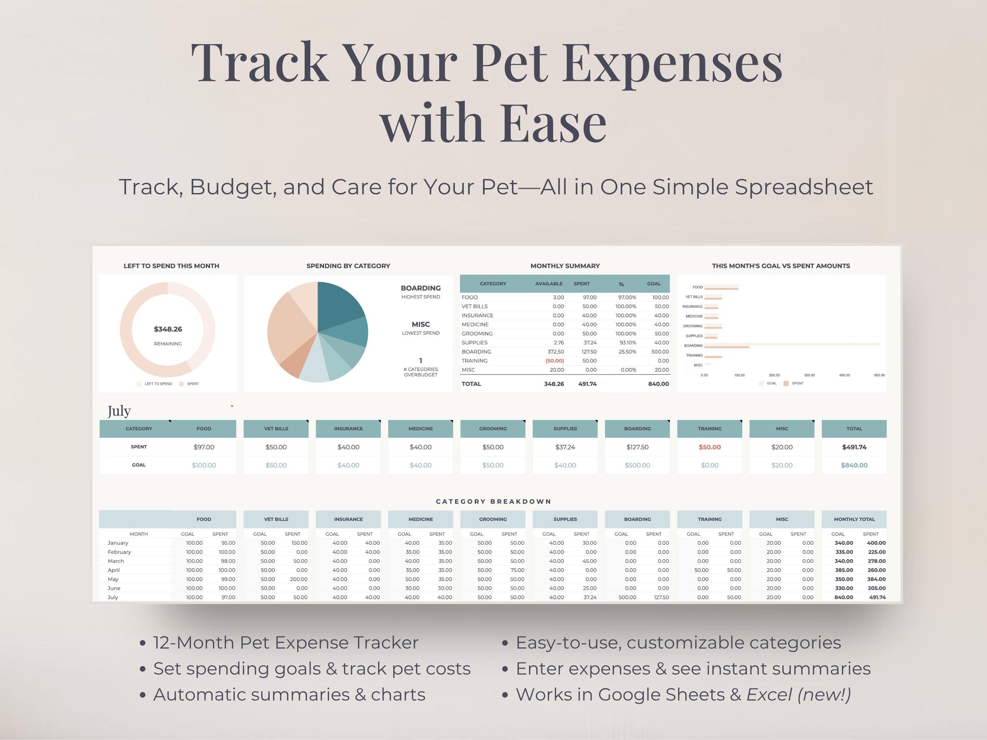 Keep your pet’s finances organized with our Pet Expense Tracker for Google Sheets and Excel.