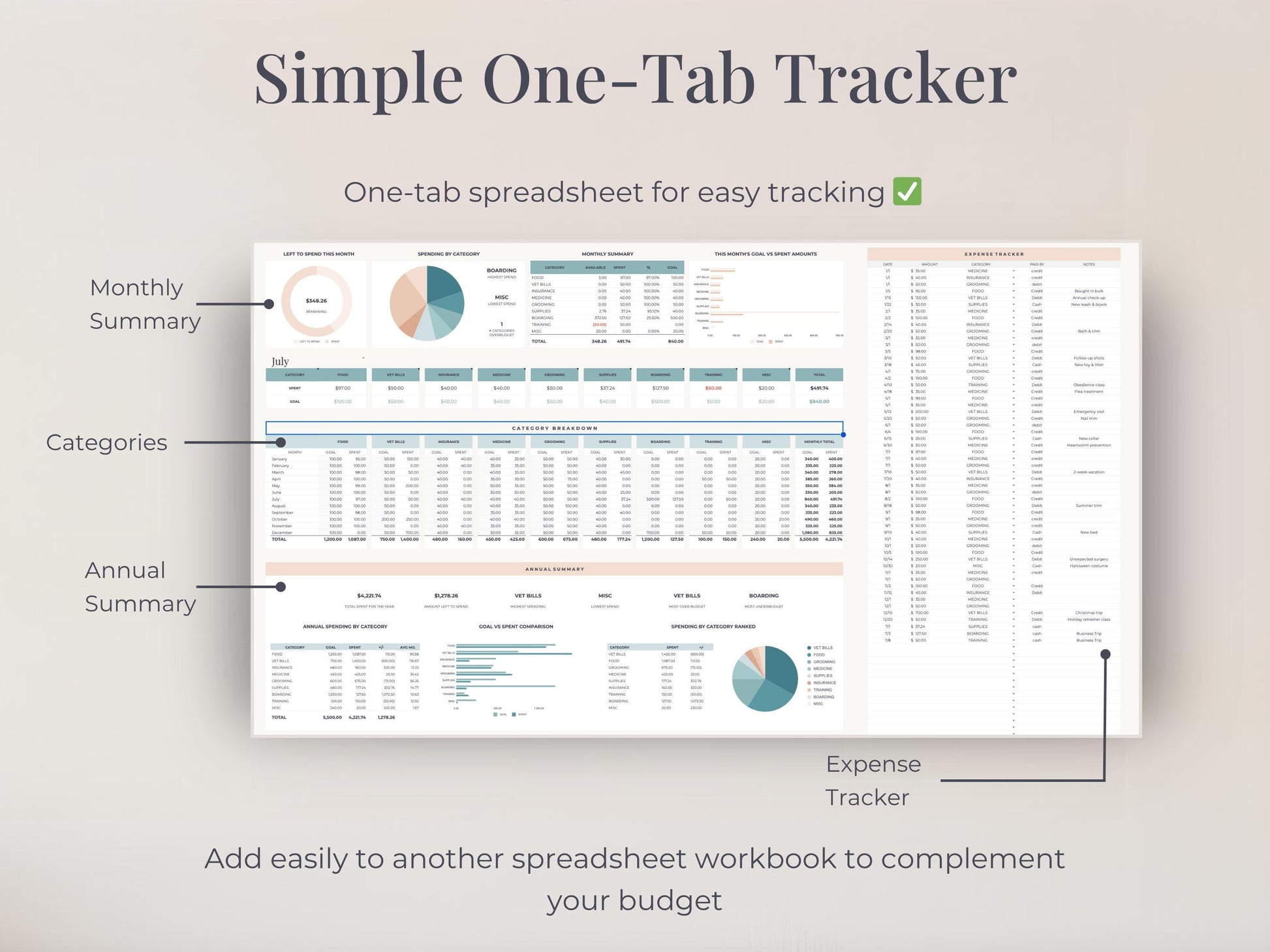 Designed for both dog and cat owners, this spreadsheet makes it easy to stay on budget, plan ahead for care costs, and track spending over time. Take the stress out of pet ownership and enjoy peace of mind knowing your pet’s needs (and your wallet) are well cared for.