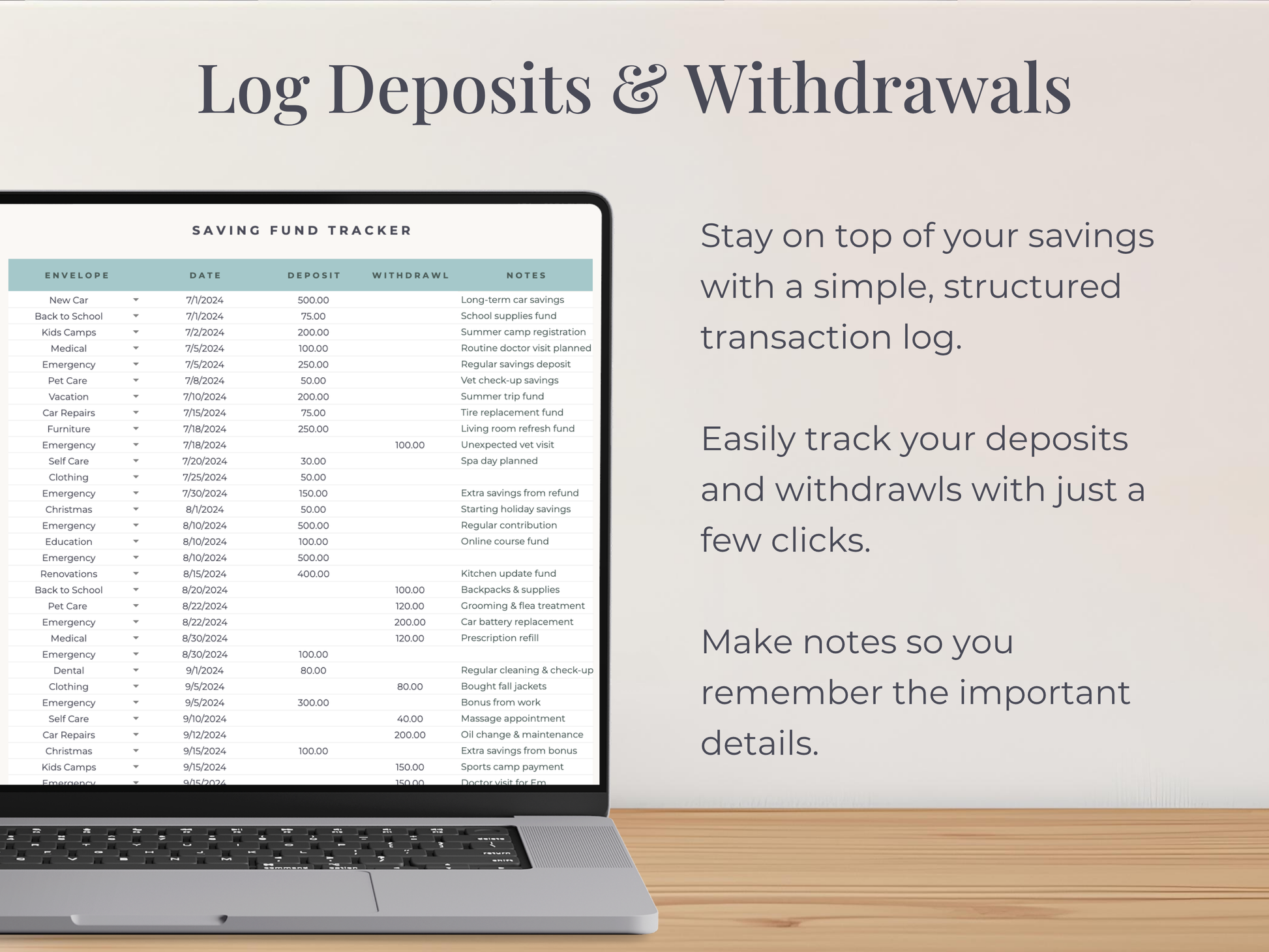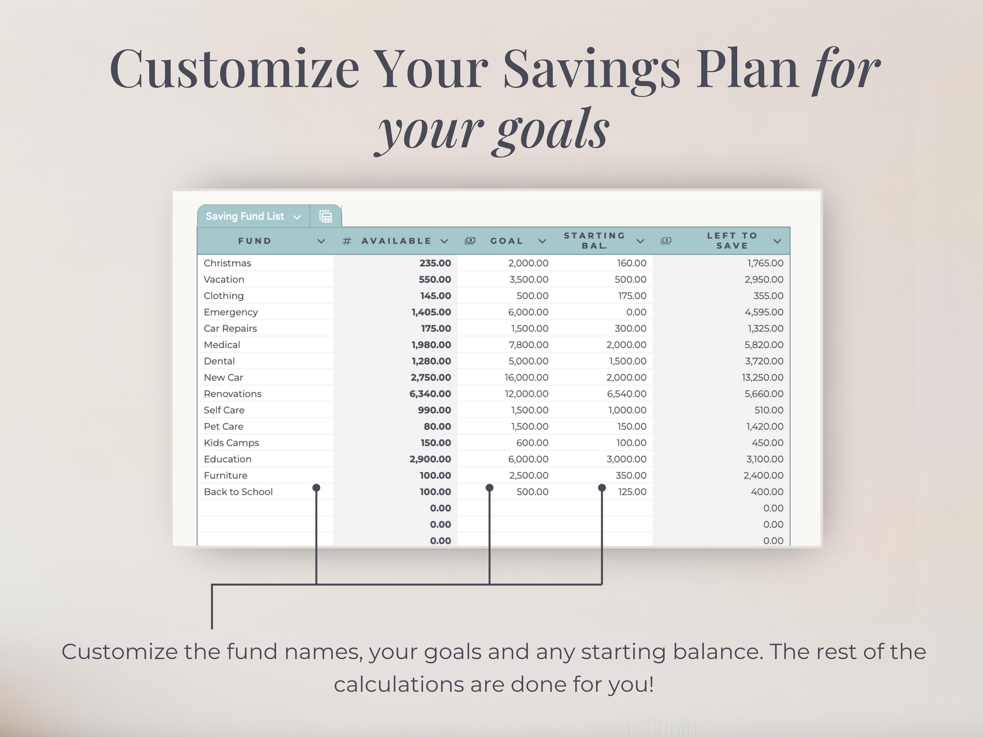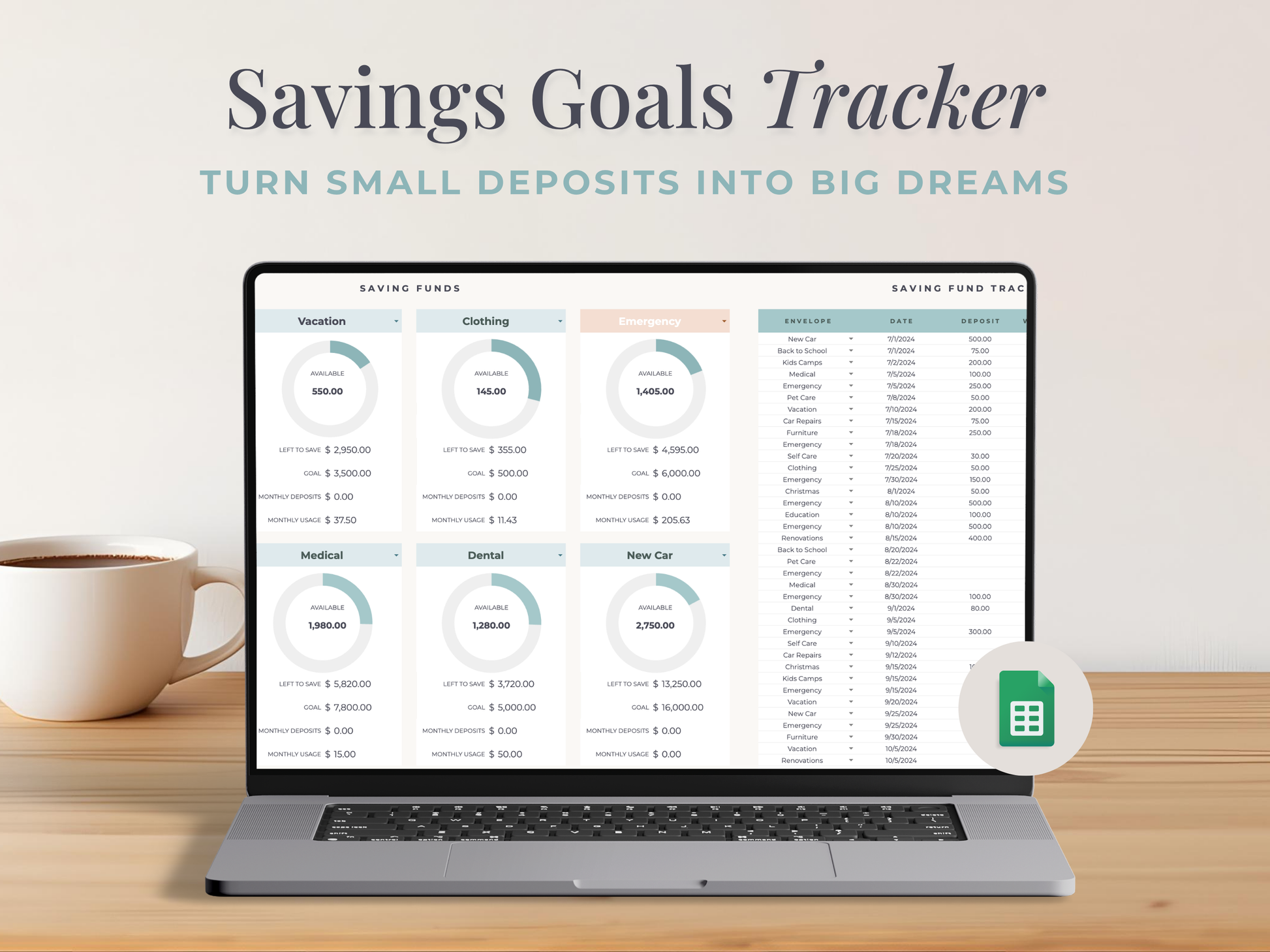 This digital savings planner doubles as a sinking fund tracker, helping you set, monitor, and achieve multiple savings goals with ease.